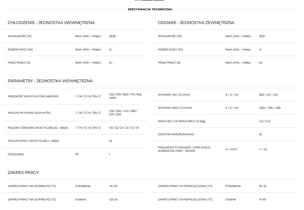 Wbudowany pakiet zimowy tj. grzałka tacy ociekowej i karteru sprężarki pozwoli na bardziej efektywną pracę w temperaturach zewnętrznych do -22 °C.