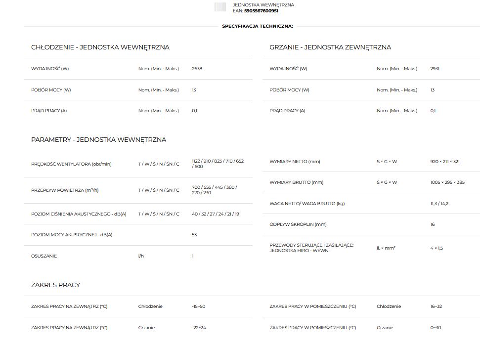 Wyposażone w grzałki umiejscowione w tacy ociekowej oraz karterze sprężarki, skutecznie przeciwdziała oblodzeniu, co umożliwia jego działanie w szerokim zakresie temperatur – od -15 do 50°C w trybie chłodzenia i od -15 do 30°C podczas ogrzewania.