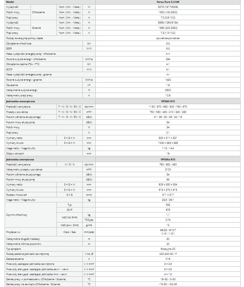 Cechy charakterystyczne Rotenso Versu Pure: