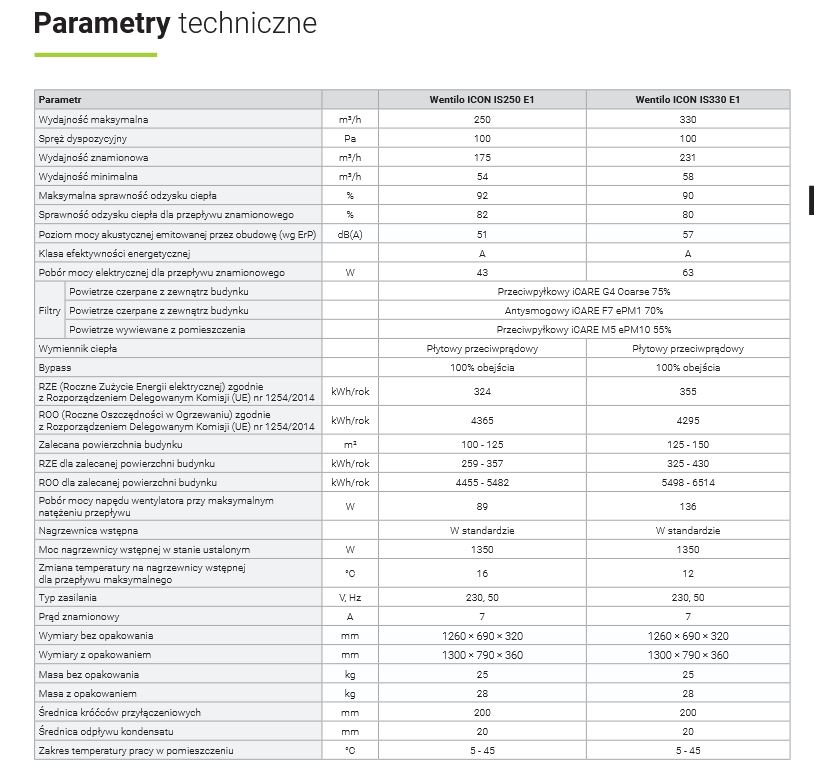 INFORMACJE - Rekuperator Rotenso Wentilo Icon ISE1 :