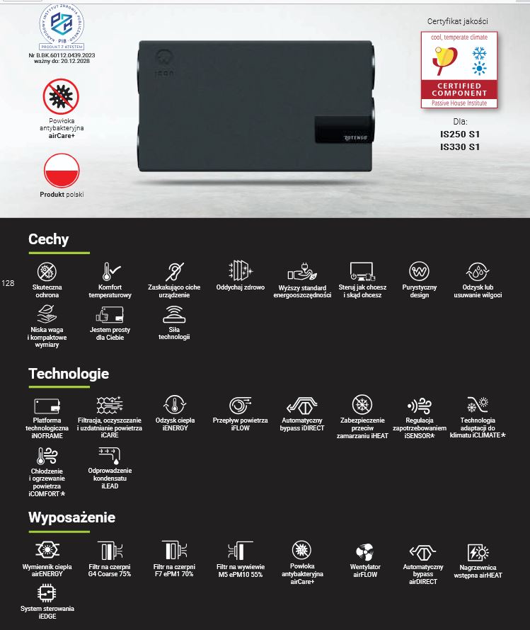 INFORMACJE - Rekuperator Rotenso Wentilo Icon IS S1 :