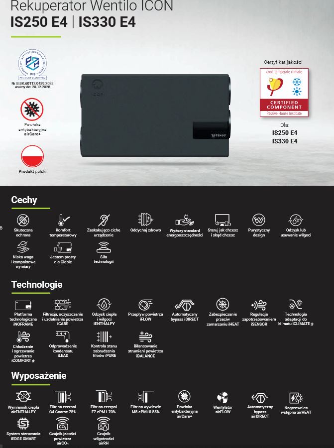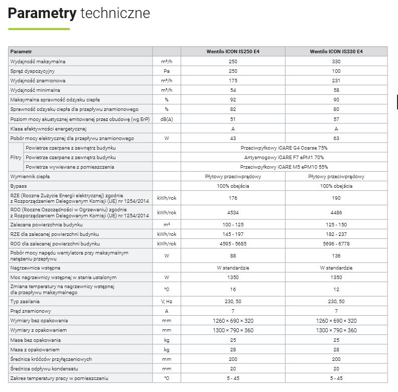 INFORMACJE - Rekuperator Rotenso Wentilo Icon IS E4: