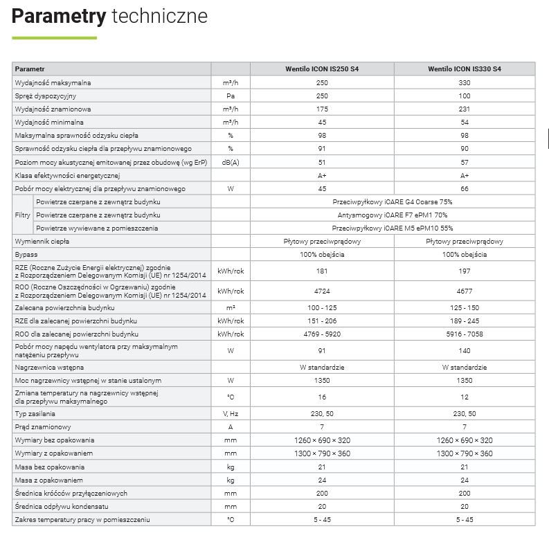 INFORMACJE - Rekuperator Rotenso Wentilo Icon IS S4 :