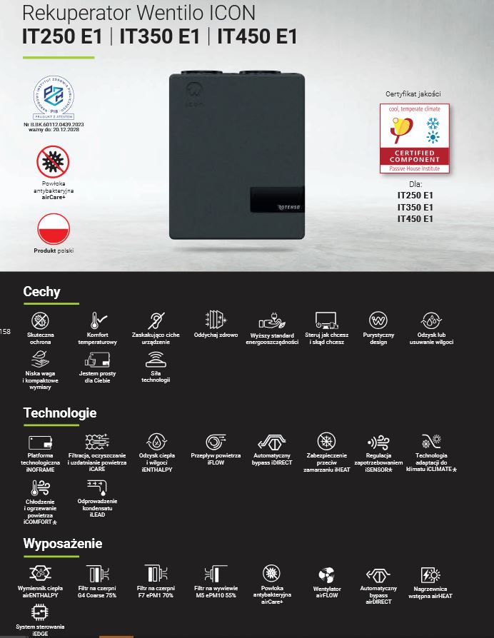 INFORMACJE - Rekuperator Rotenso Wentilo Icon IT E1 :