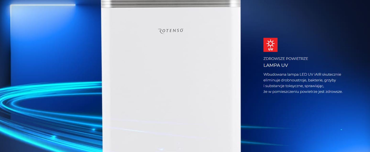 Oczyszczacz Rotenso® Wint to urządzenie z 6-etapowym procesem uzdatniania powietrza. Jest wyposażony w filtr kompozytowy 4 w 1, gdzie w jednej obudowie znajdują się filtry: elektrostatyczny HD iAIR, antybakteryjny EPA klasy E11, z aktywnym węglem iAIR i zimnokatalityczny Cold Nano iAIR.