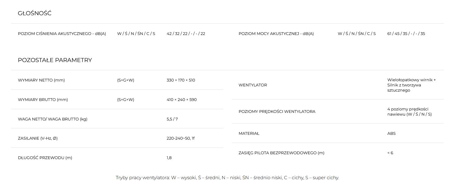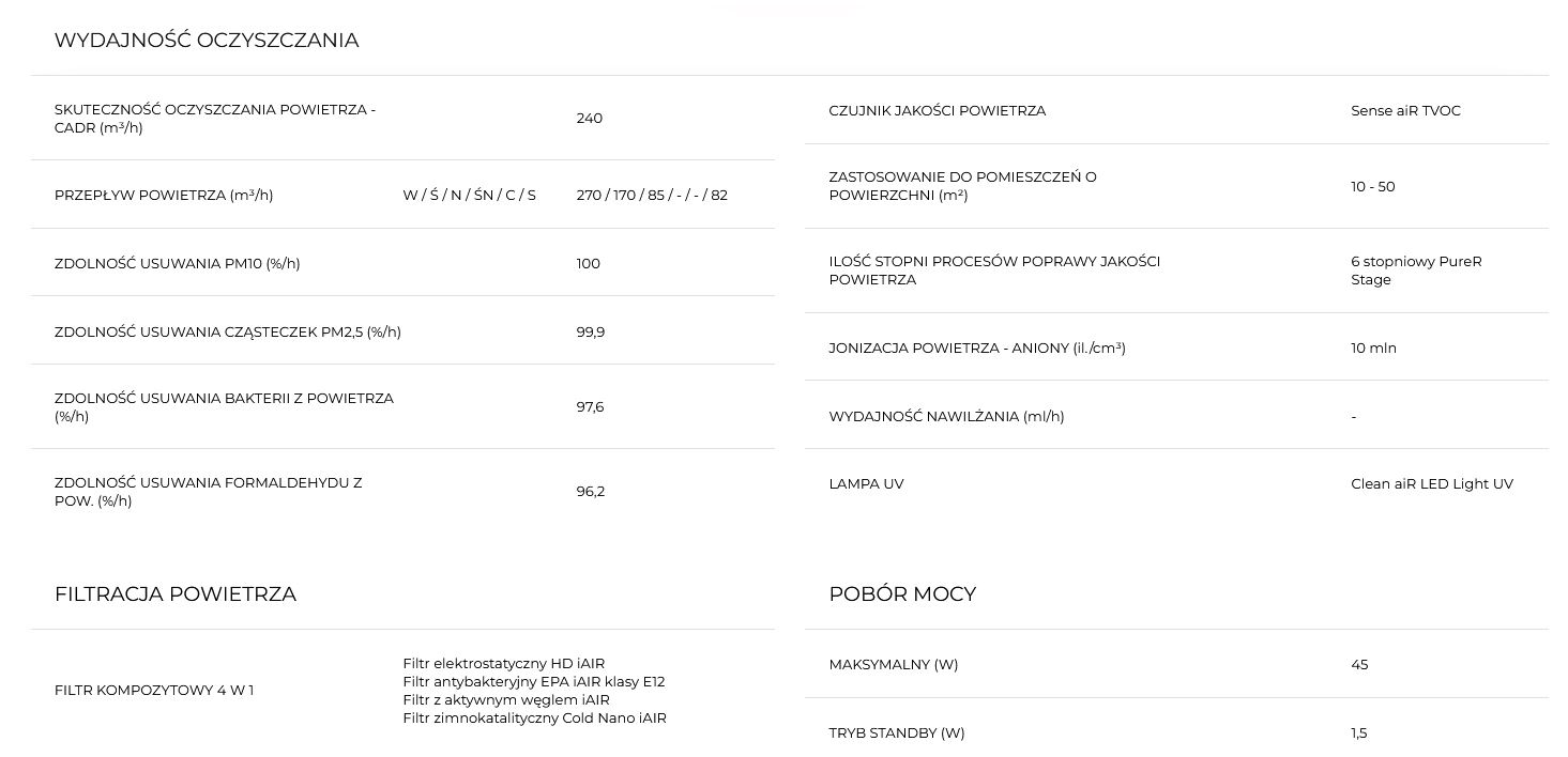 - wydajność oczyszczania powietrza CADR: 240 m³/h